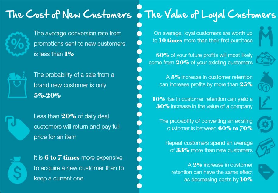 As I said in the previous section, business owners often spend enough marketing resources on their existing customers. It's amazing considering the probability of generating a sale from a new customer is between 5-20% while the probability of making a sale from an existing customer is between 60-70%.