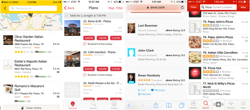 Examples of self-dimmed profile images on YP.com, OpenTable, Avvo and Yelp