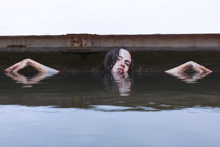 You might remember a post we did last year about Sean Yoro (a.k.a. Hula), the awesome paddleboard artist who paints amazing murals on abandoned buildings that interact with water. Well now he’s back with more stunning creations and his new work is just as spectacular.