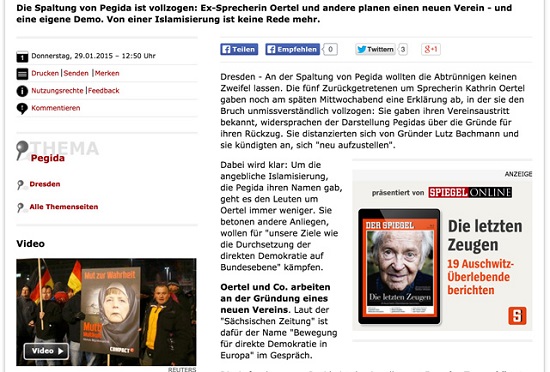 On the left-hand side of the article, you can find essential interaction features like the “Topic” box that provides all links to the topic (here: Pegida) and a video below.