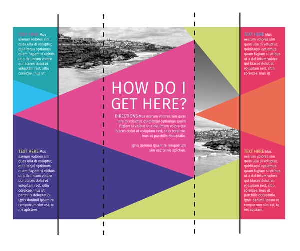 - Be bold—strong, large-scale typography and bright, eye-catching color and graphics will make your brochure more visible from afar and help it to stand out from the crowd.
