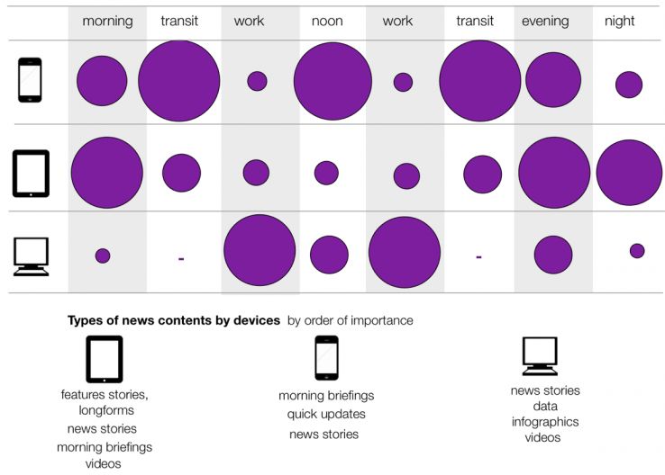 The type of content we consume on each device varies widely and requires a systematic approach to content production to service well. For instance, you'll want to take into account how much time you actually have to grab and hold a readers' attention.