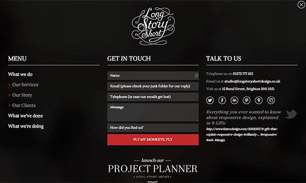 Take a look at the home page of Small Stone – they sell videos and music. The menu has been designed into an old-fashioned sound board, and the knobs are the navigation buttons – pretty unique.