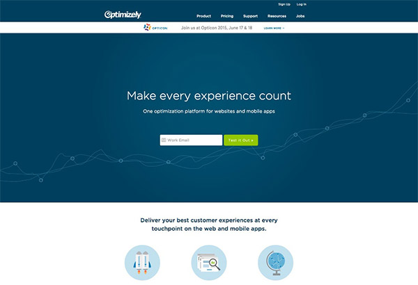 Both of these patterns help to enhance the identity of the organization and appeal to its customer/follower base. - Data Patterns: Lots of companies sell more abstract services, not concrete products. The background patterns used should reflect that. These patterns can be inspired by mathematics or high-tech, and can give a feel of “beyond worldly.” Here is an example of a very subtle and minimalist data pattern for Optimizely: