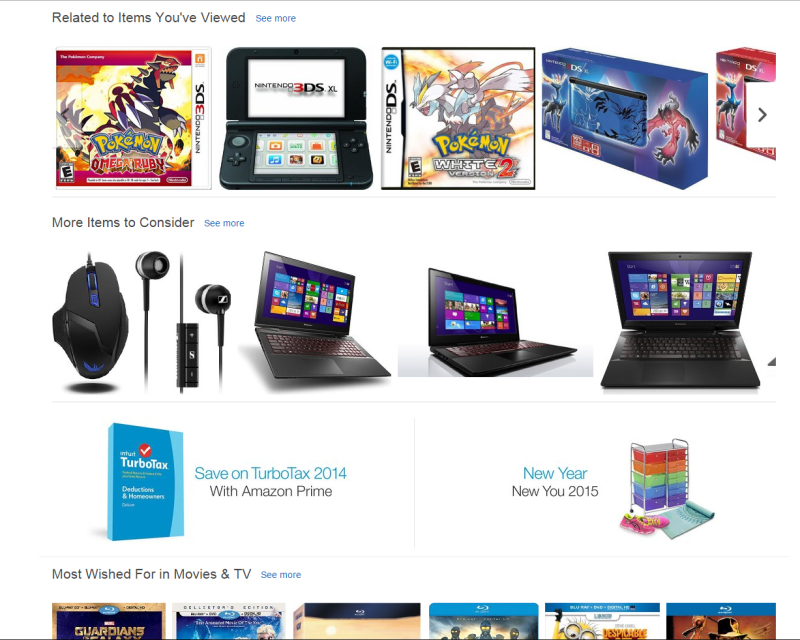 Below is what greets me when I go to amazon.com, and I'd venture to say it's very revealing of my tastes as an individual: