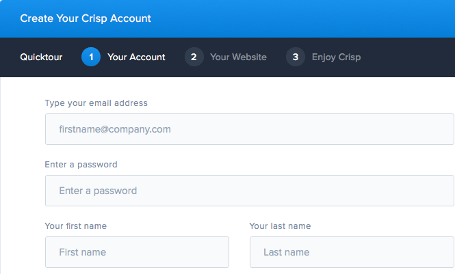 1. Please go to https://app.crisp.chat/initiate/signup/