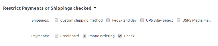 3. Check the Shippings or Payments you need to be disabled for customers on checkout