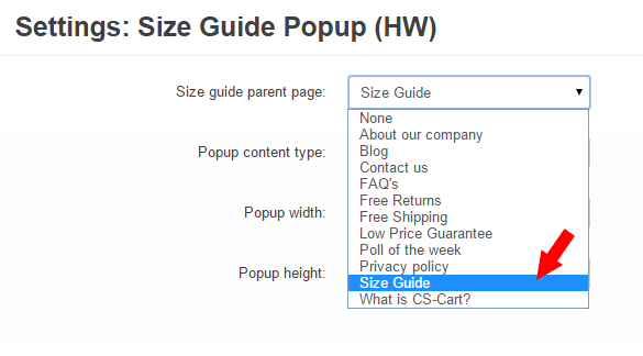 Size Guide Popup is a CS-Cart add-on for displaying the measurement of a product. It allows you to create visual size guides for products and you can easily manage them from the administration panel.