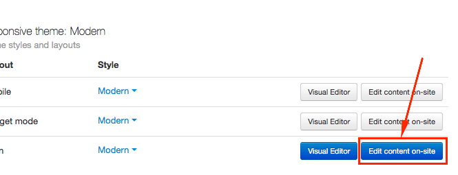 2. Click on the blue button Edit content on-site (blue button means that is the active one)