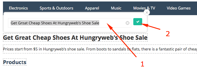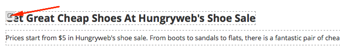 4. Hover with the mouse over the text you want like to edit and click on the corner icon